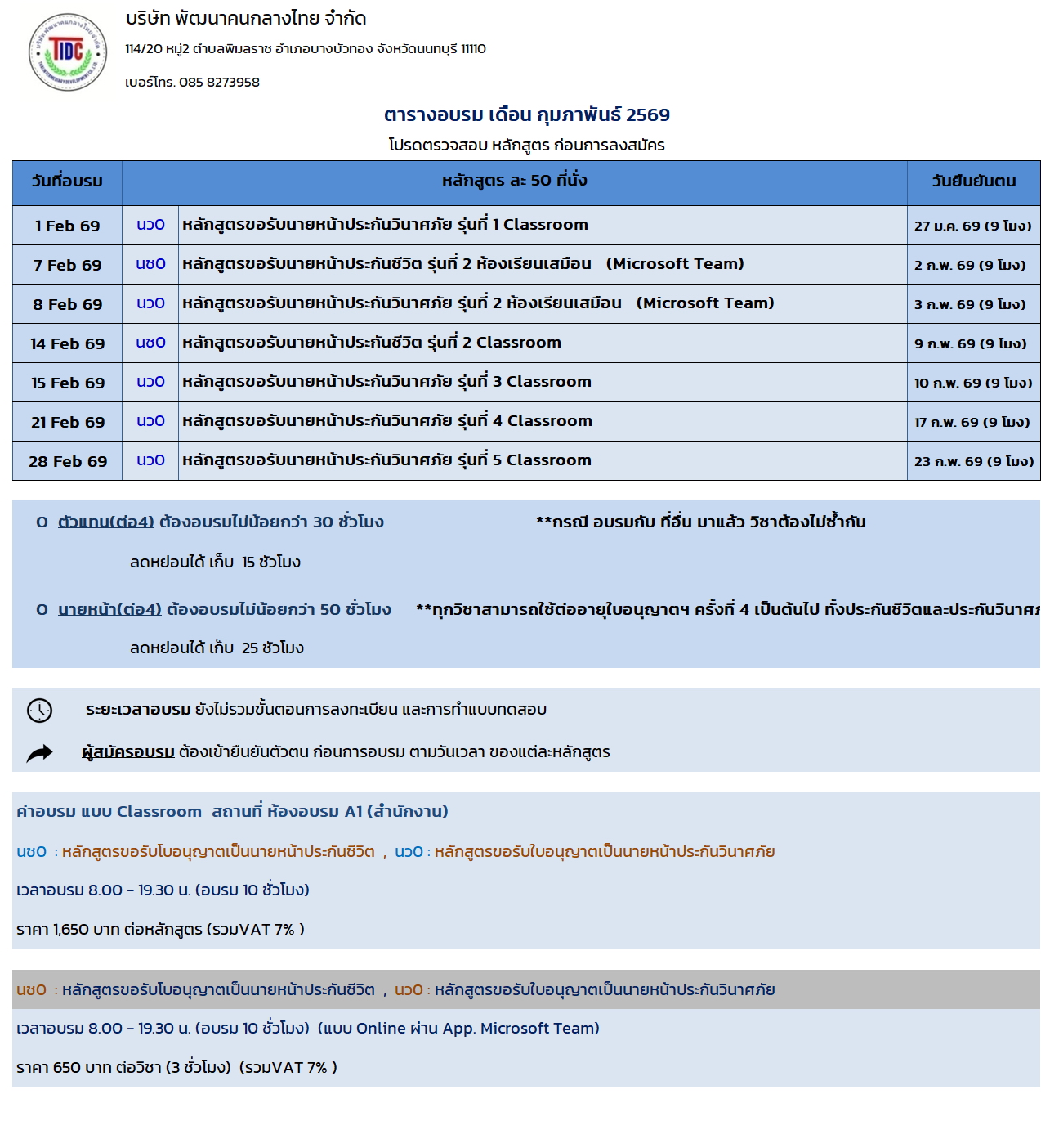 วิชาอบรม TIDC