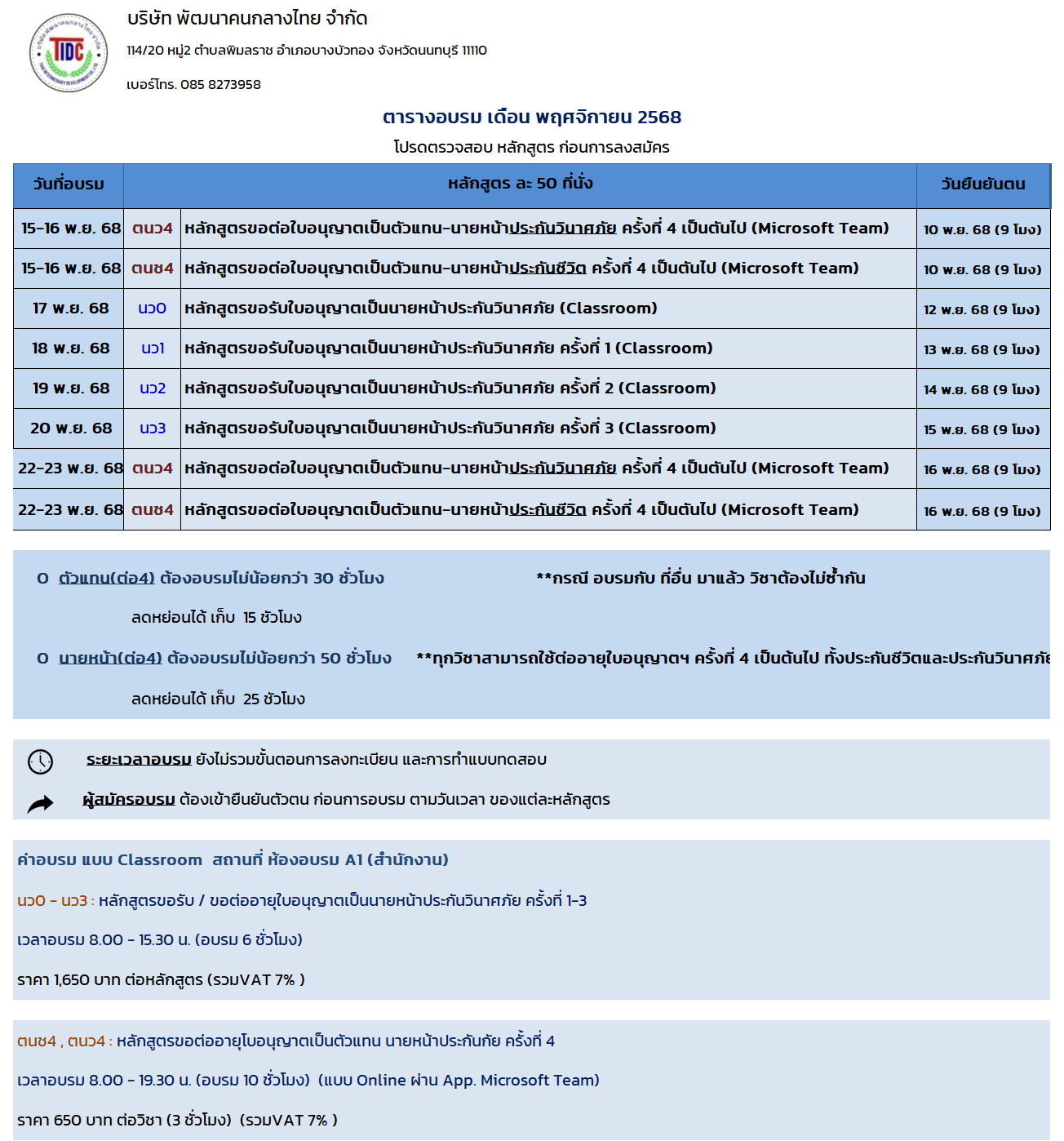 วิชาอบรม TIDC